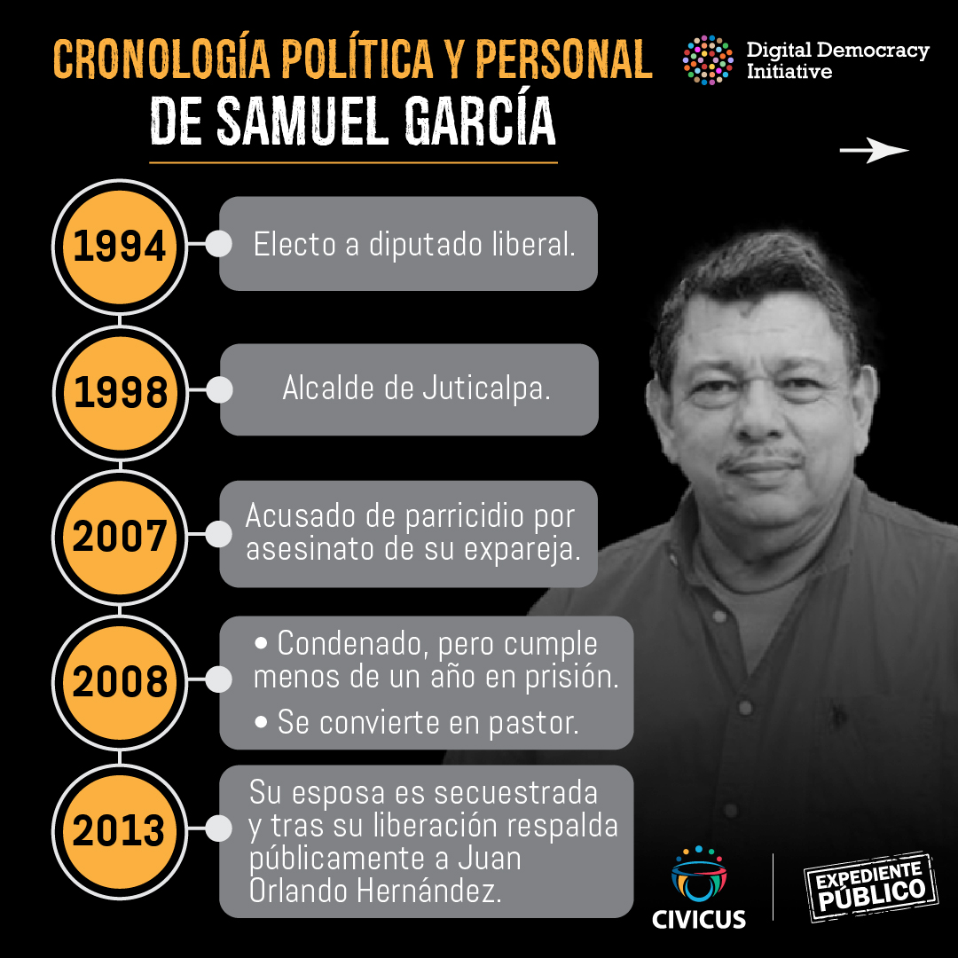 El fútbol y la política en Honduras suelen entrelazarse. En enero de 2016, Samuel García adquirió la franquicia del equipo Olancho FC por unos US$10.000 e invirtió cerca de US$100.000 más, según reportes periodísticos. Como dirigente deportivo, el exdiputado construía una plataforma que lo mantendría vigente en la esfera pública.