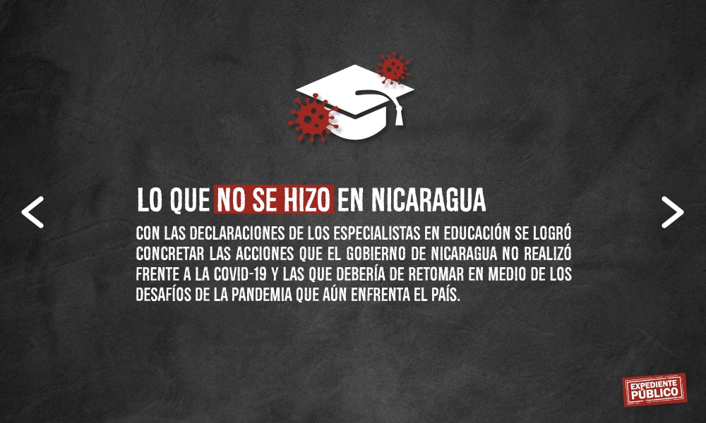 Este caso, es un solo ejemplo de cómo Nicaragua en medio de la pandemia de la Covid-19, a diferencia de otros países de América Latina y el mundo, no ordenó el cierre de las escuelas públicas, a pesar de que los espacios educativos no contaban con las condiciones de higiene necesarias, siempre las mantuvo abierta.