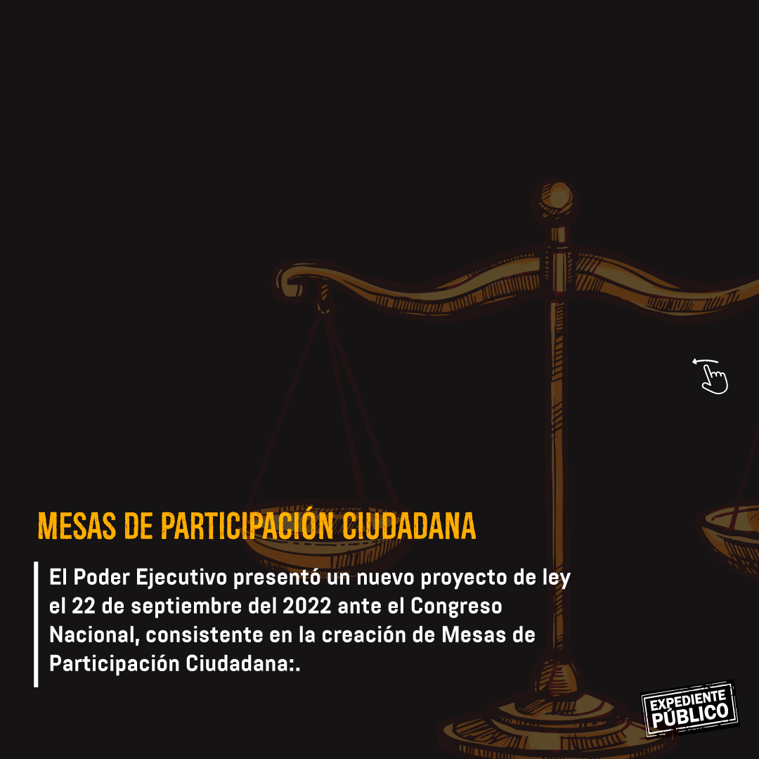 La iniciativa de Ley de Mesas de Participación Ciudadana fue presentada ante el Congreso Nacional de Honduras el jueves 22 de septiembre del 2022, pero aún no ha sido discutida en el parlamento, ya que todavía está en revisión en la comisión de dictamen encabezada por el diputado Rafael Sarmiento.