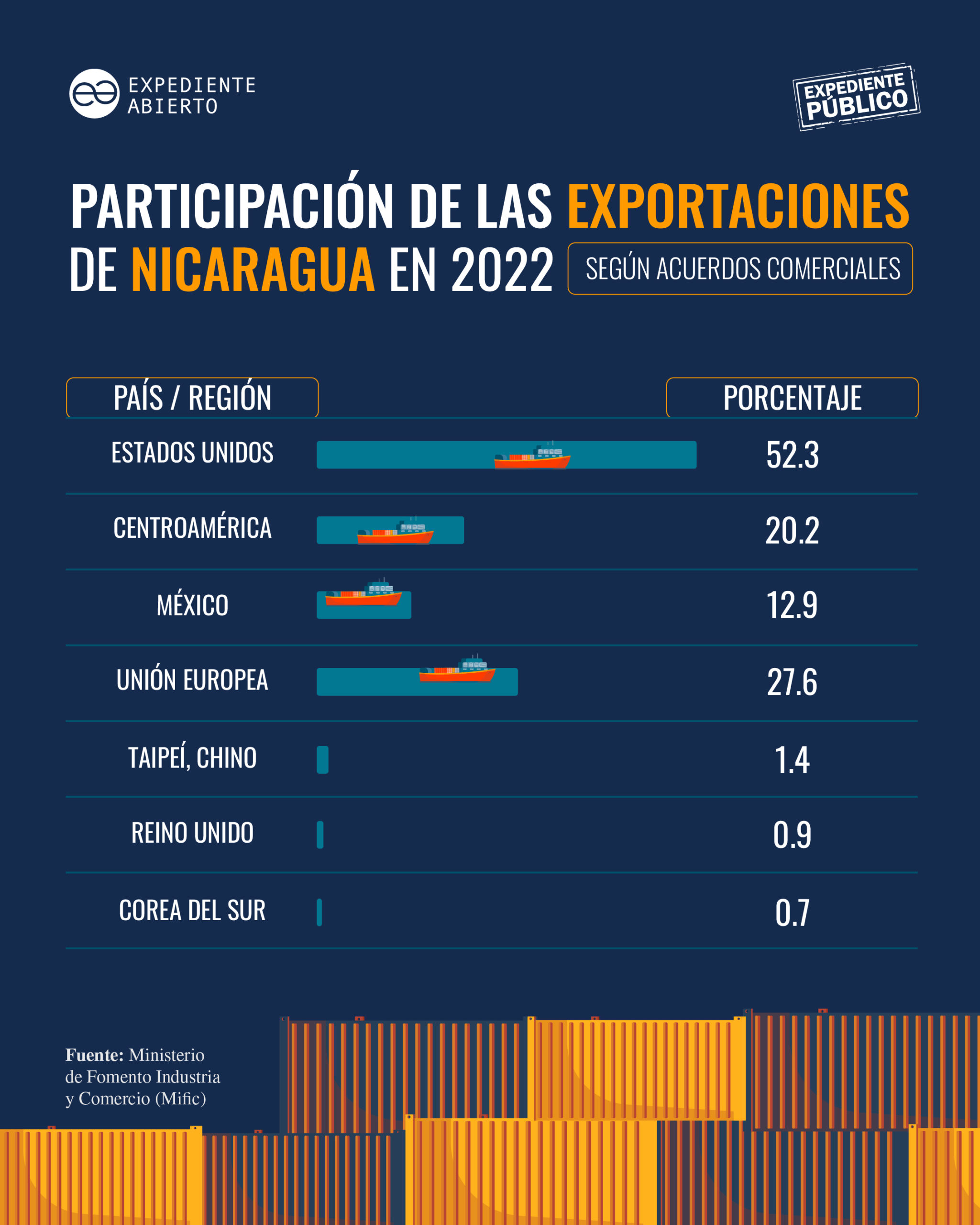 Estados Unidos es el primer mercado destino de las exportaciones nicaragüenses y en 2022 sumaron US$1,804.4 millones, según cifras del Banco Central de Nicaragua.