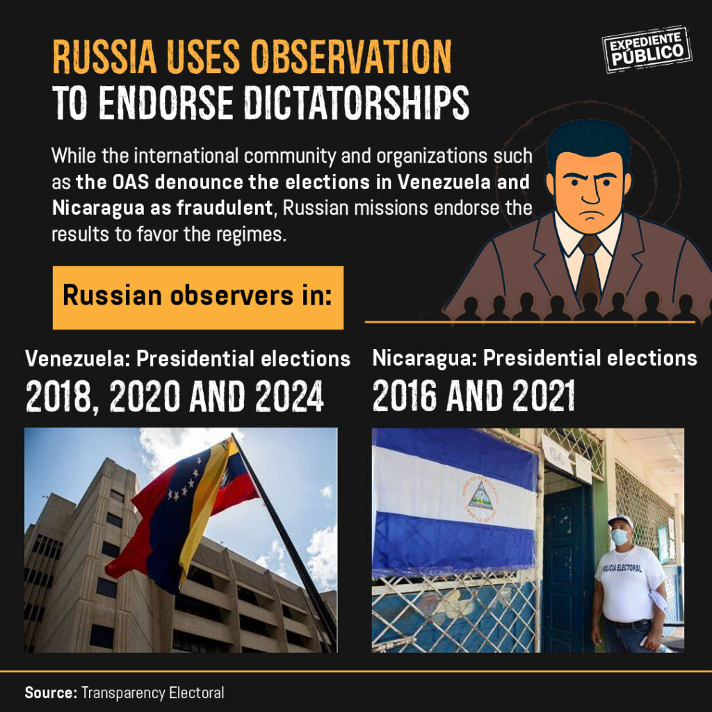 The Russian delegation did the same in Nicaragua, in the 2016 and 2021 presidential elections. Russia is one of the most loyal allies of the dictatorship of Daniel Ortega and Rosario Murillo.