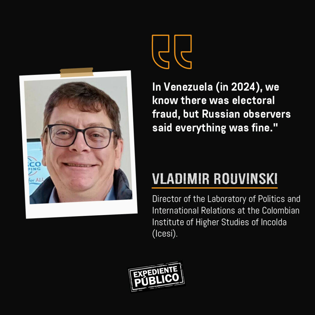 «In Russia, there are no free elections. Opposition candidates have no chance of participating, only those who are part of what is called the ‘systemic opposition,’ a controlled opposition,» Russian expert Vladimir Rouvinski told Expediente Público.