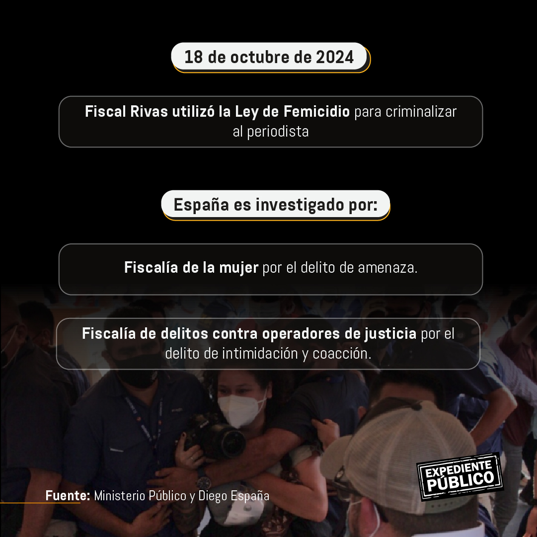 Posteriormente, la jueza Maribel Culajay prohibió al periodista acercarse a los tribunales y al Ministerio Público, sus fuentes de información habituales, entre las medidas impuestas a España, estaba no perturbar la paz de la fiscal, ni la de su familia, así como evitar molestarla.