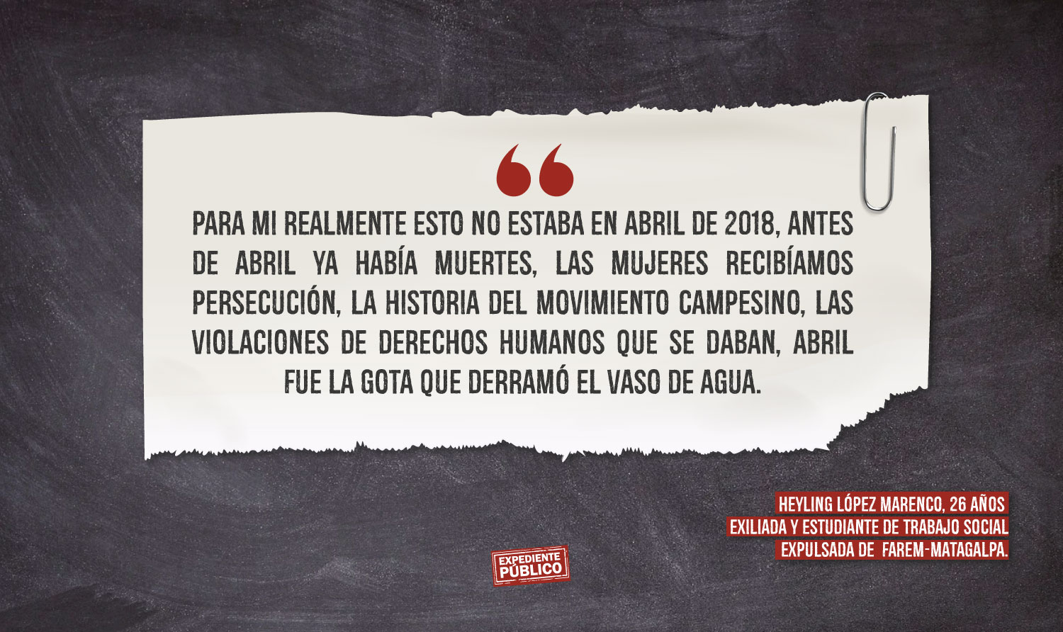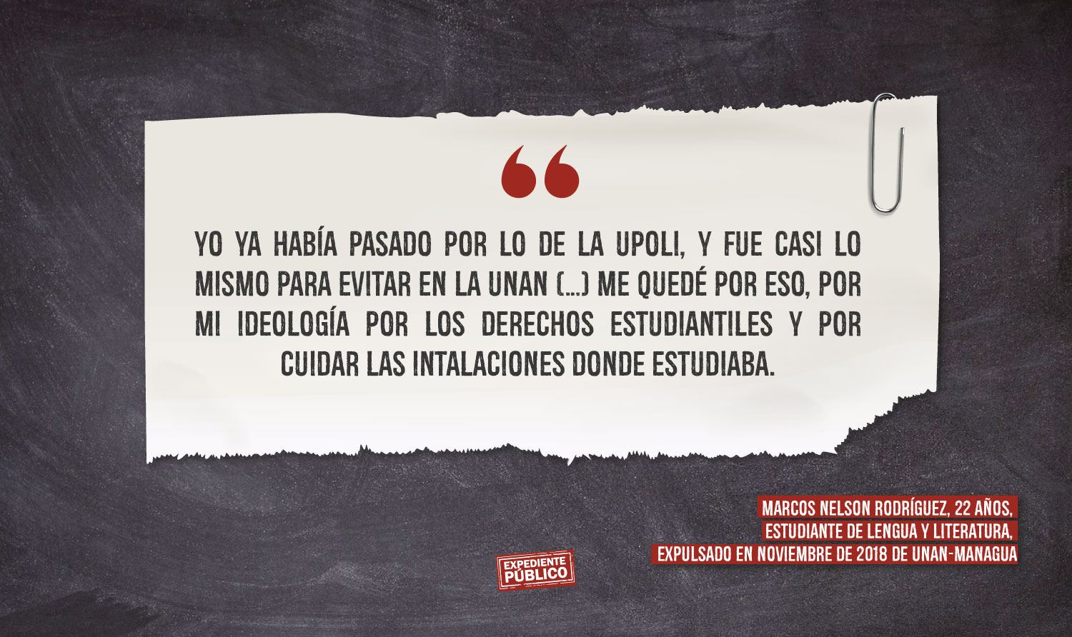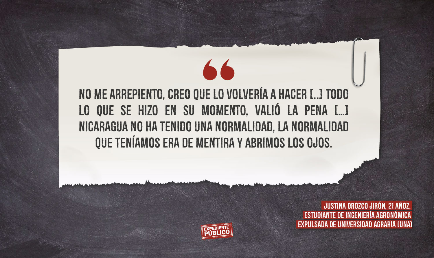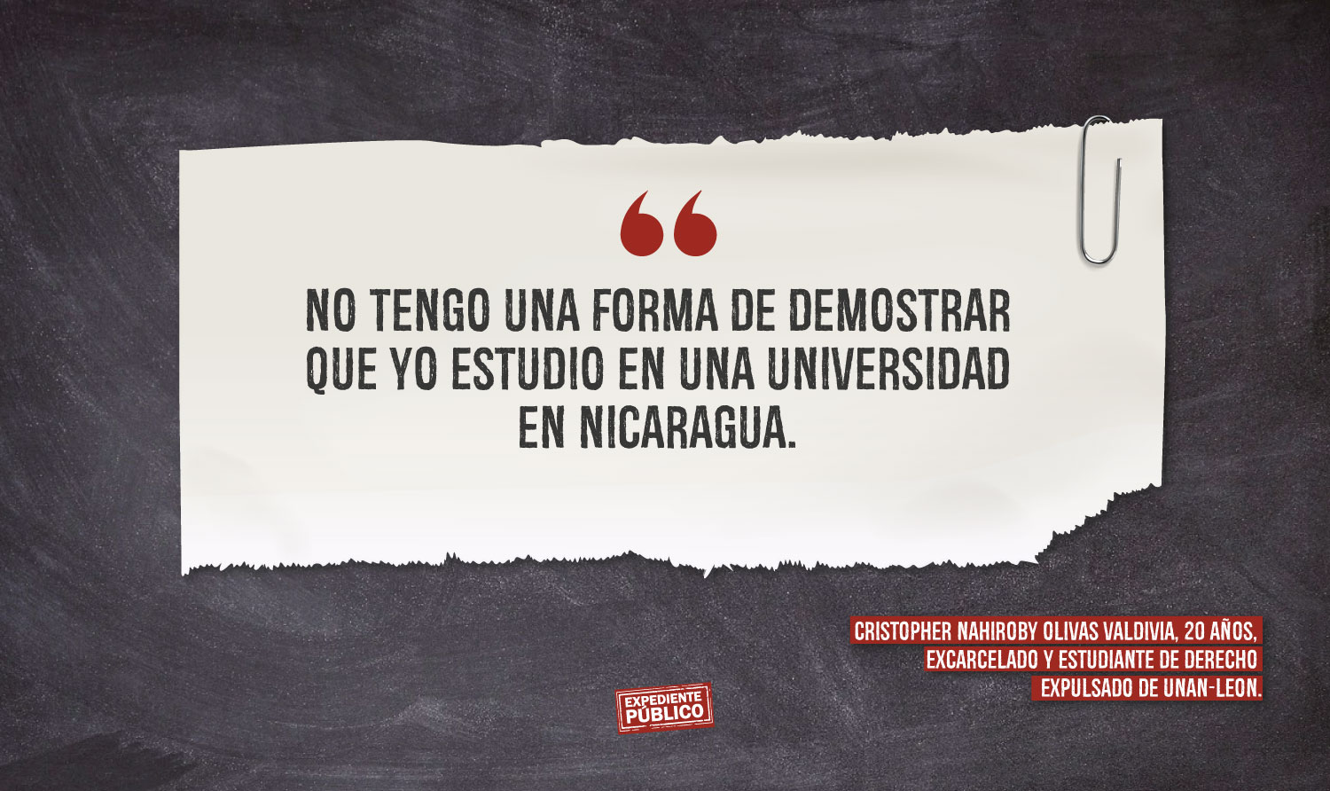 Además del testimonio de tres estudiantes expulsados: Alejandra Centeno, Cristopher Nahiroby Olivas, y Levis Artola Rugama.