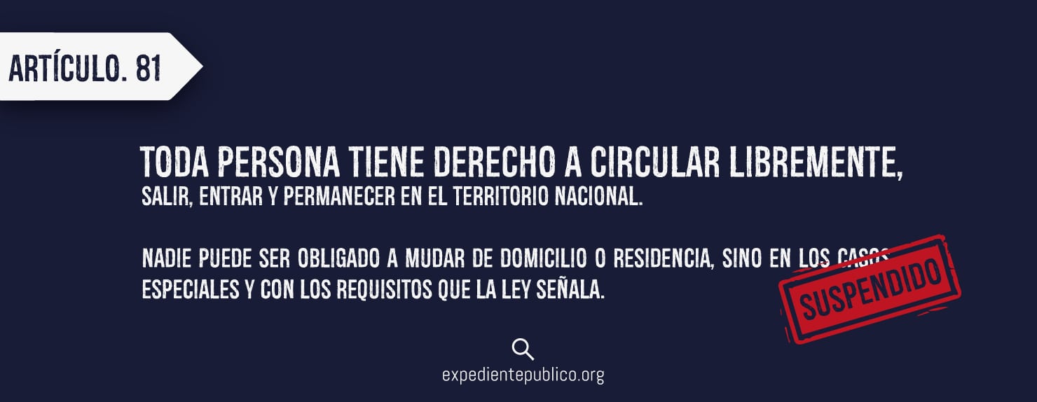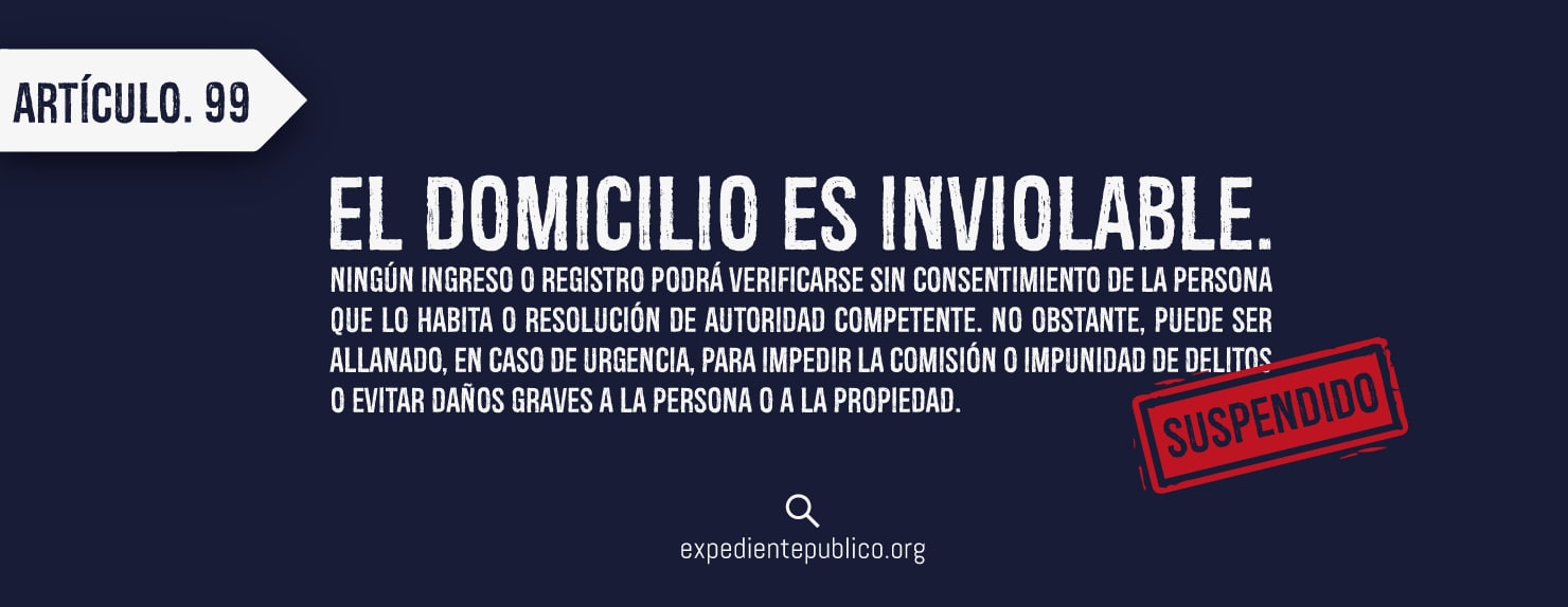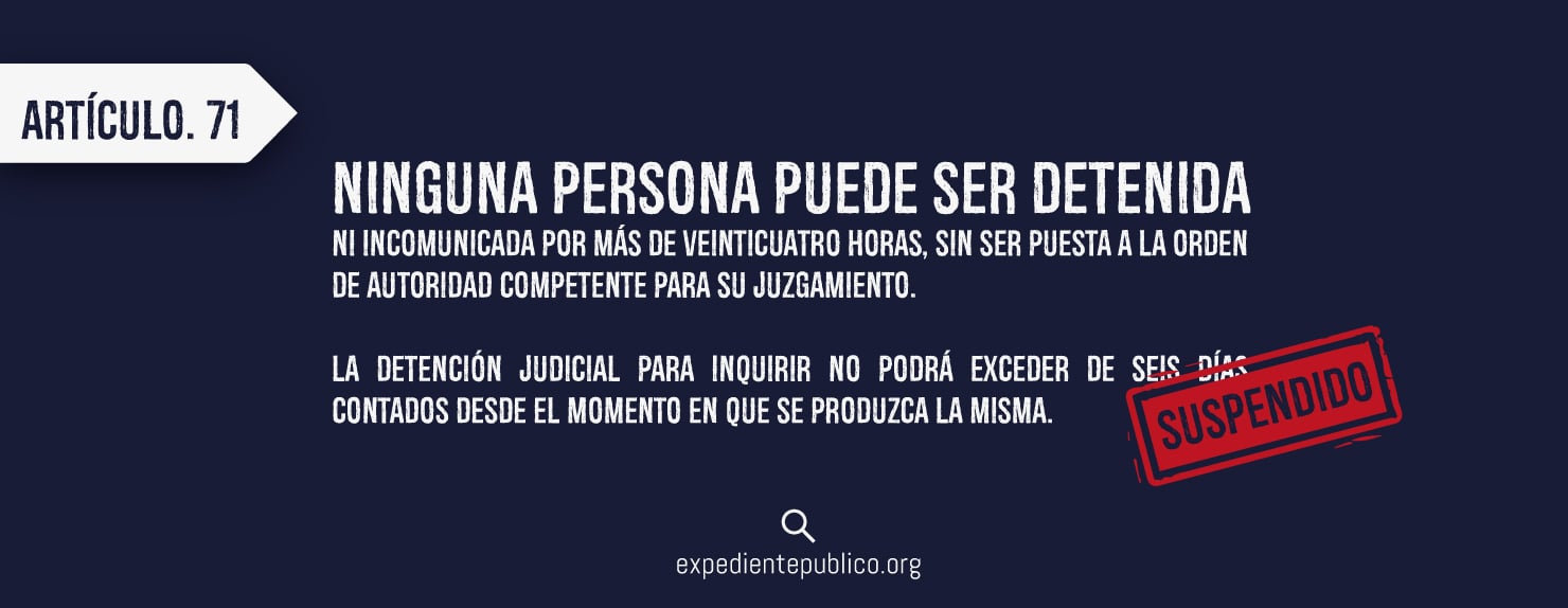 La detención se hizo en aplicación al Decreto Ejecutivo PCM 021-2020, emitido el 15 de marzo pasado y que ordena la suspensión de garantías constitucionales, entre ellas la libertad personal, libre expresión, libertad de reunión y asociación, de circulación, inviolabilidad del domicilio y el derecho a la propiedad privada, todo esto como parte del manejo de la emergencia por COVID-19.