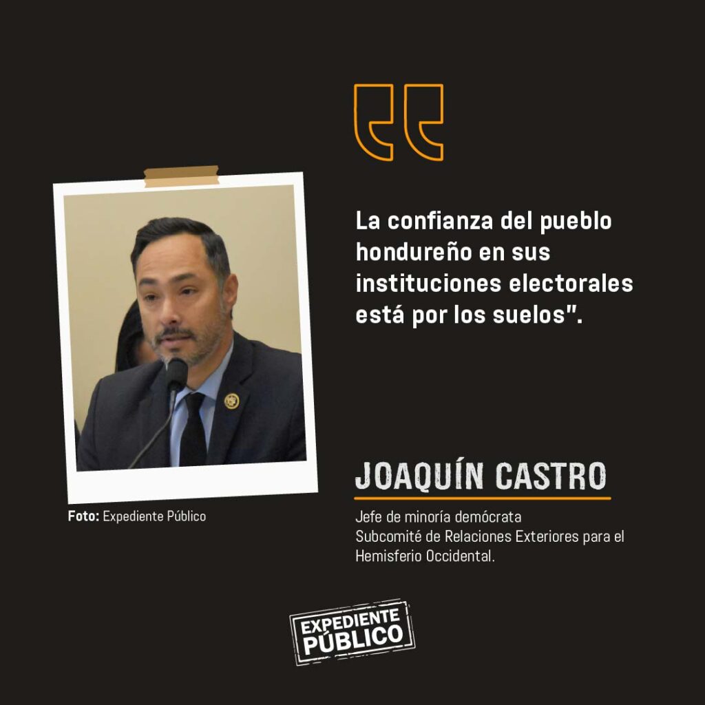 “Este comité está enviando un mensaje contundente y claro a las Fuerzas Armadas, respaldado por el Departamento de Estado y por la administración del presidente Donald Trump, que Honduras tiene que celebrar elecciones libres, justas y transparentes (…) EE. UU. tiene puestos sus ojos este 30 de noviembre en Honduras”, apuntó Salazar.