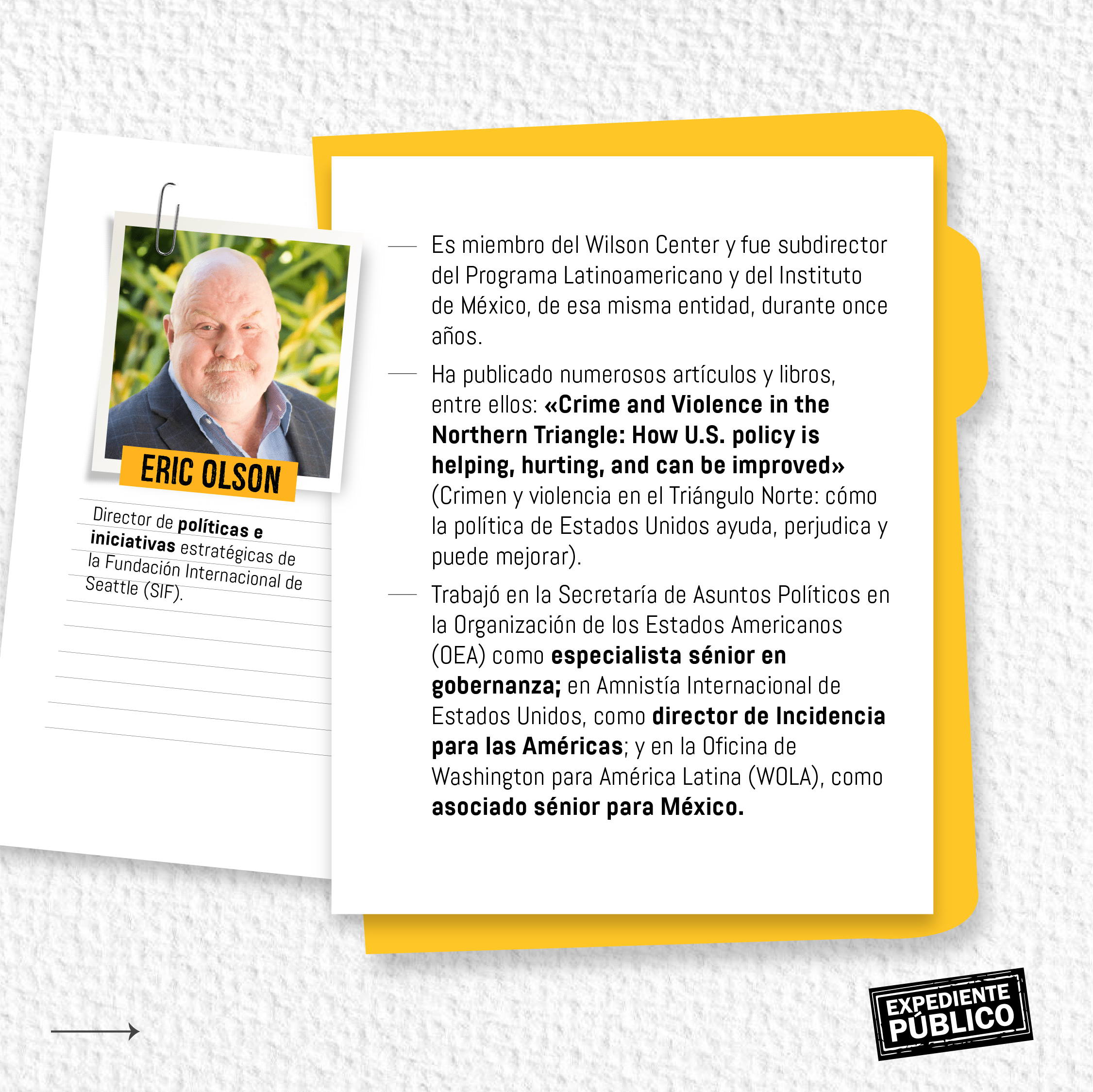 *Eric Olson, director de políticas e iniciativas estratégicas de la Fundación Internacional de Seattle y miembro del Wilson Center, cree que, así como hay desafíos en el país, también hay esperanza de superarlos.