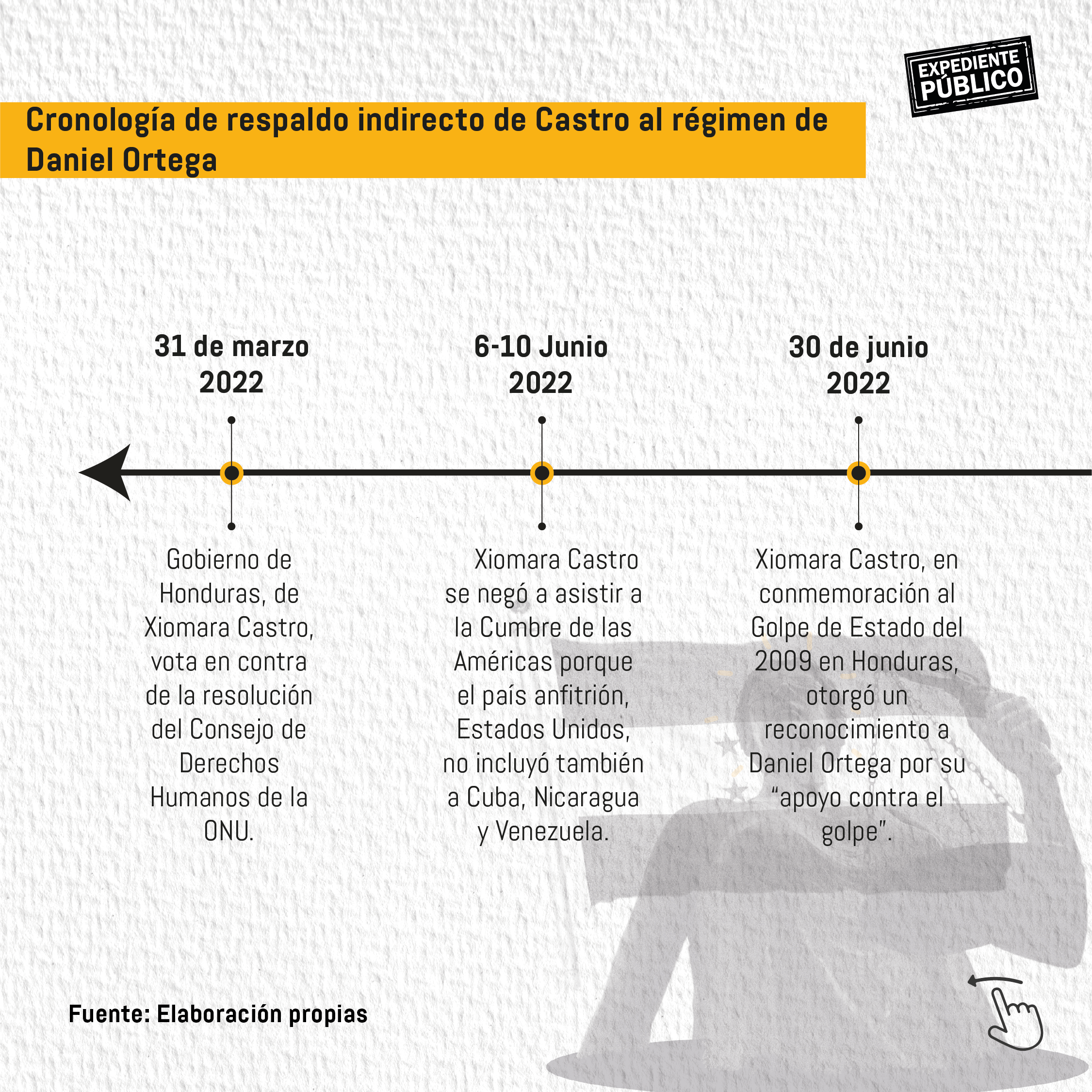 “Puede ser cierta empatía la que quizás trae consigo la señora Castro en relación a todo el apoyo que recibió Manuel Zelaya de Ortega en el golpe de Estado” así lo percibió a Expediente Público una abogada nicaragüense que habló en condición de anonimato por su seguridad.